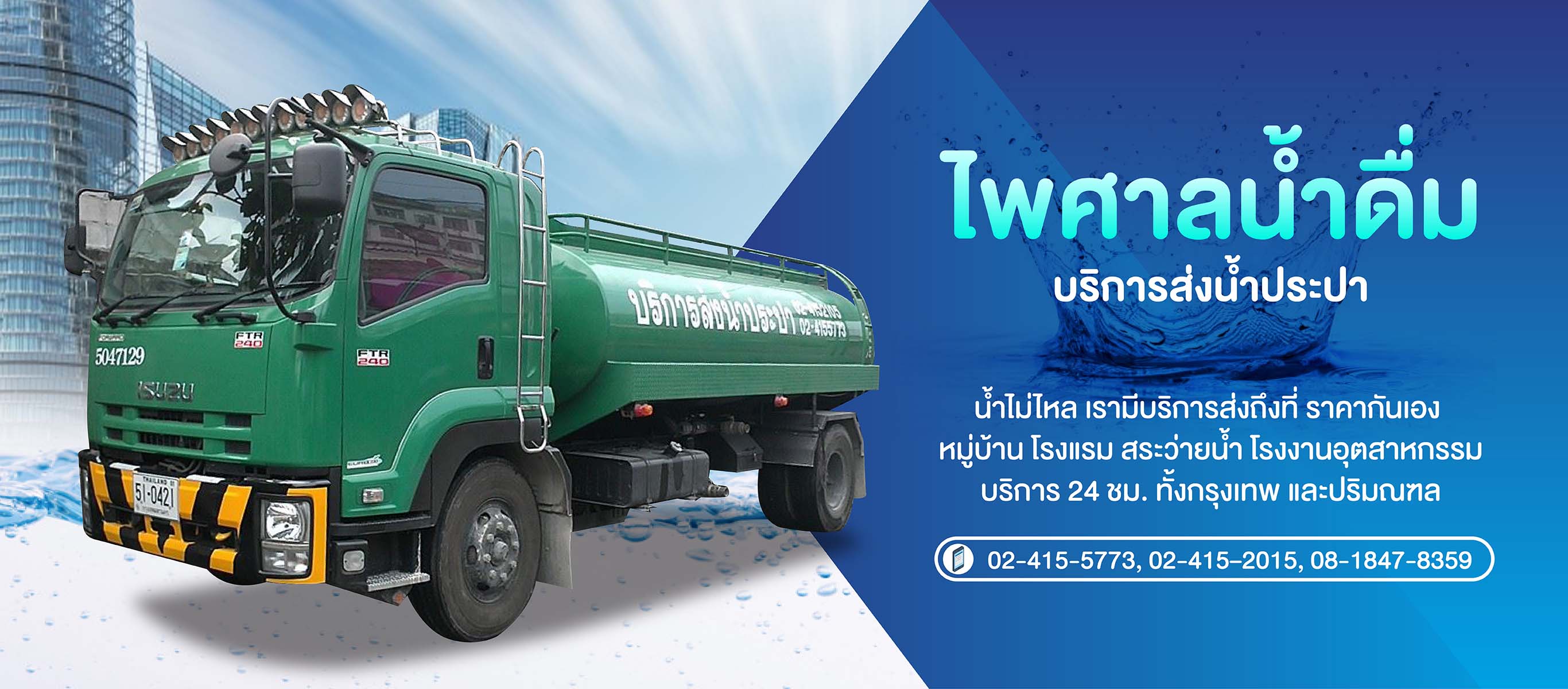 ไพศาลน้ำดื่ม บริการส่งน้ำประปา ด้วยประสบการณ์มากกว่า 40 ปี น้ำประปาขายเป็นคันรถ ทางเลือกสำหรับ บริษัทฯ ห้าง ร้าน หรือ ประชาชน ที่ขาดแคลนน้ำ ต้องการใช้น้ำแบบเร่งด่วน เรามีบริการหลากหลาย จัดส่งตามความต้องการ เพียงเรียกใช้ ไพศาลน้ำดื่ม บริการทุกวัน ตลอด 24 ชม.รถขายน้ำประปา รถส่งน้ำประปา รถบรรทุกน้ำประปา